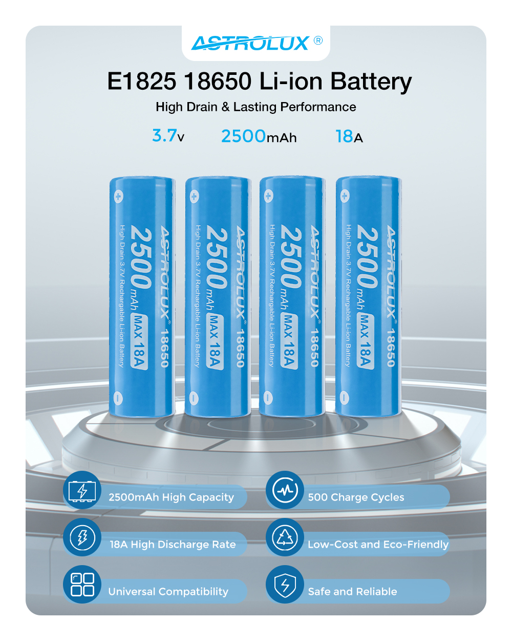2Pcs Astrolux® E1825 18A 2500mAh 3.7V 18650 Li-ion Battery Unprotected High Drain Rechargeable Lithium Power Cell For Astrolux Nitecore Lumintop Fenix Olight Flashlights RC Toys