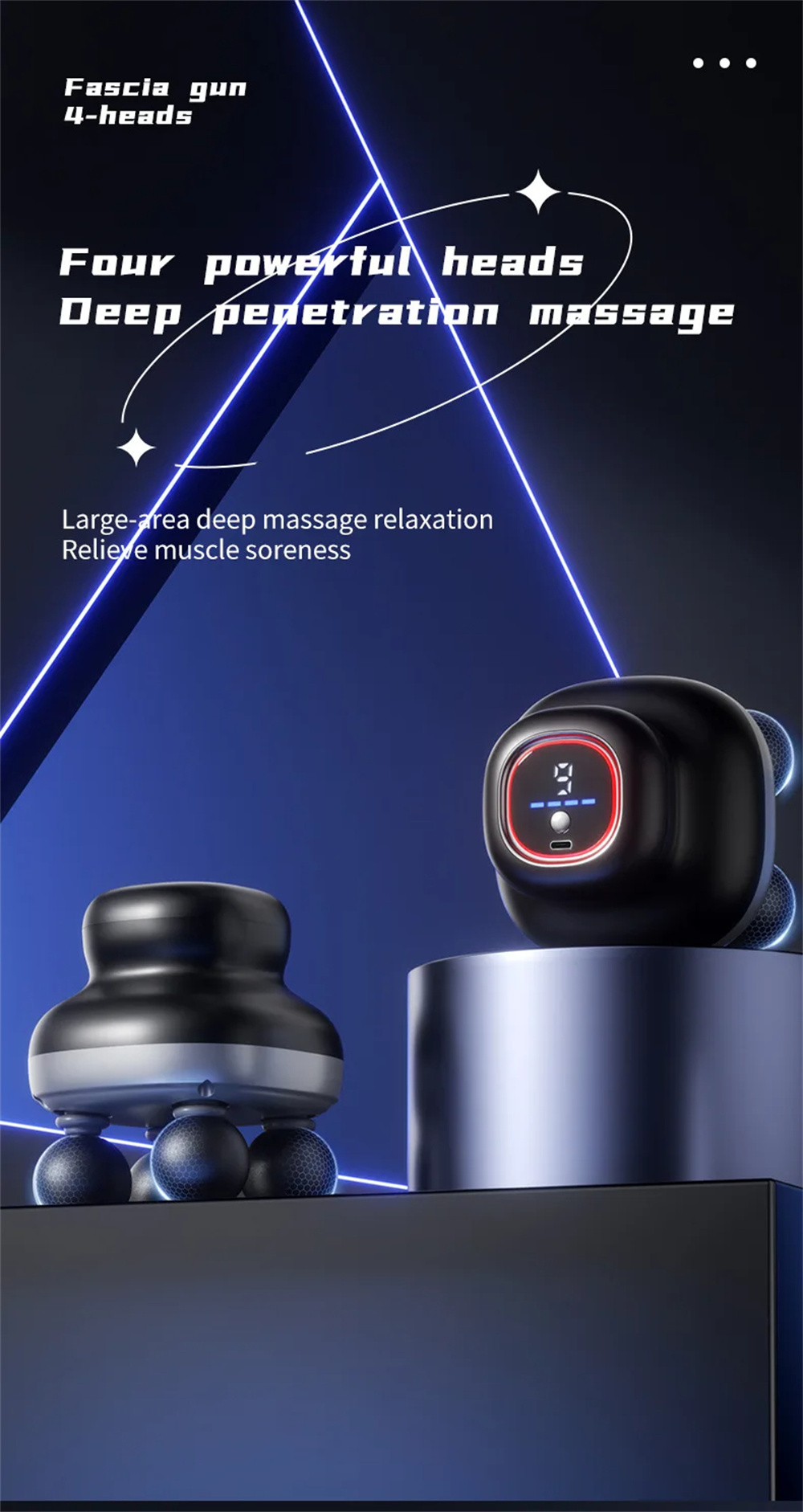 4-Head Massage Gun with 9 Speeds Deep Tissue Percussion 28kg Force 1200mAh Battery Body Muscle Relaxation Tool