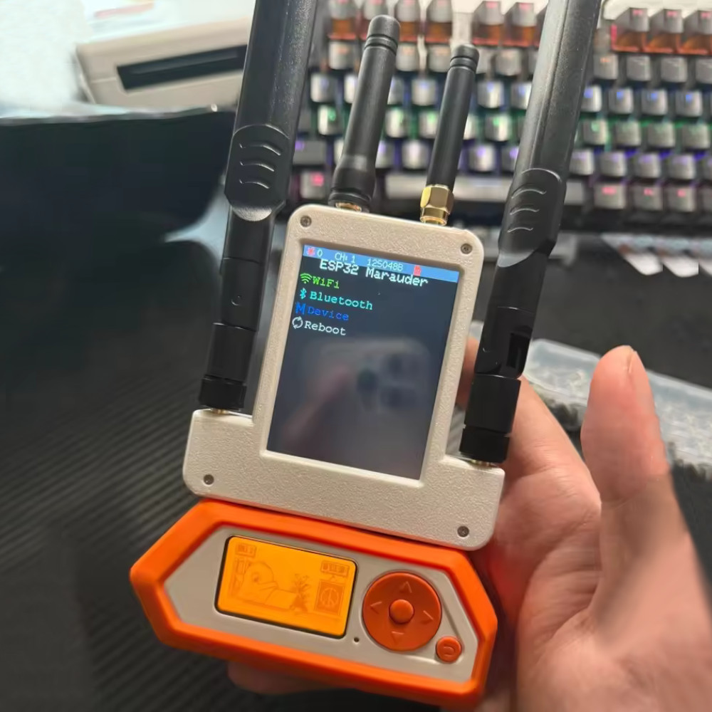 with better antennas, it fix on satellites very quickly (the big cylinder) and list 15 AP from my bed, my best scan. but I m not able to control marauder HUD from flipper_I guess it s somehow related to 1 and 2 pin holes... a tutotial somewhere ? 😅🥵