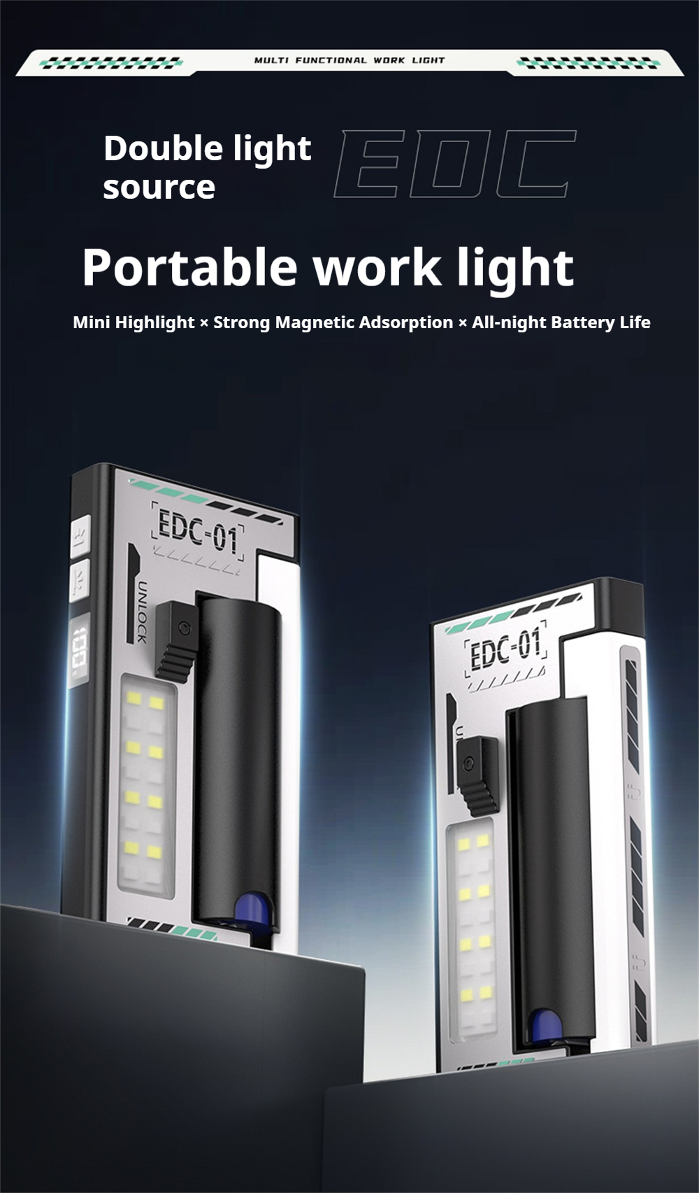 5-LED Magnetic Portable Flashlight With 21700 Battery USB Rechargeable with Digital Display, Red & Blue Warning Lights, Outdoor EDC Work Inspection Lamp