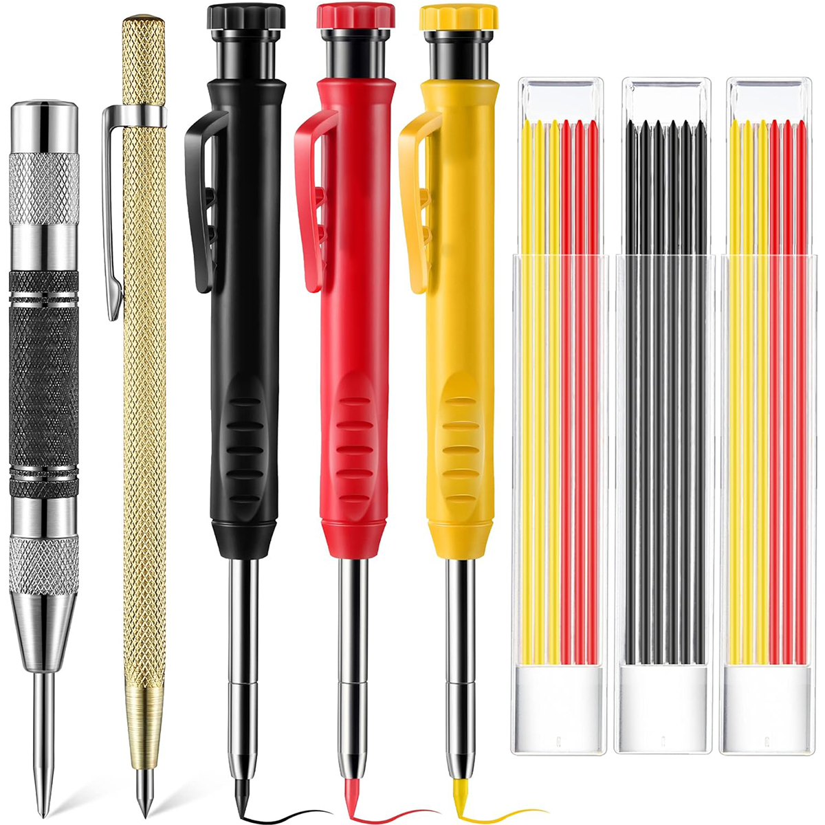 8 Pack Carpenter Pencil Set with Deep Hole Marker Built-in Sharpener and Carbide Scribe Marking Tool for Woodworking Marking Mechanical Pencils with Multi-Color Refills