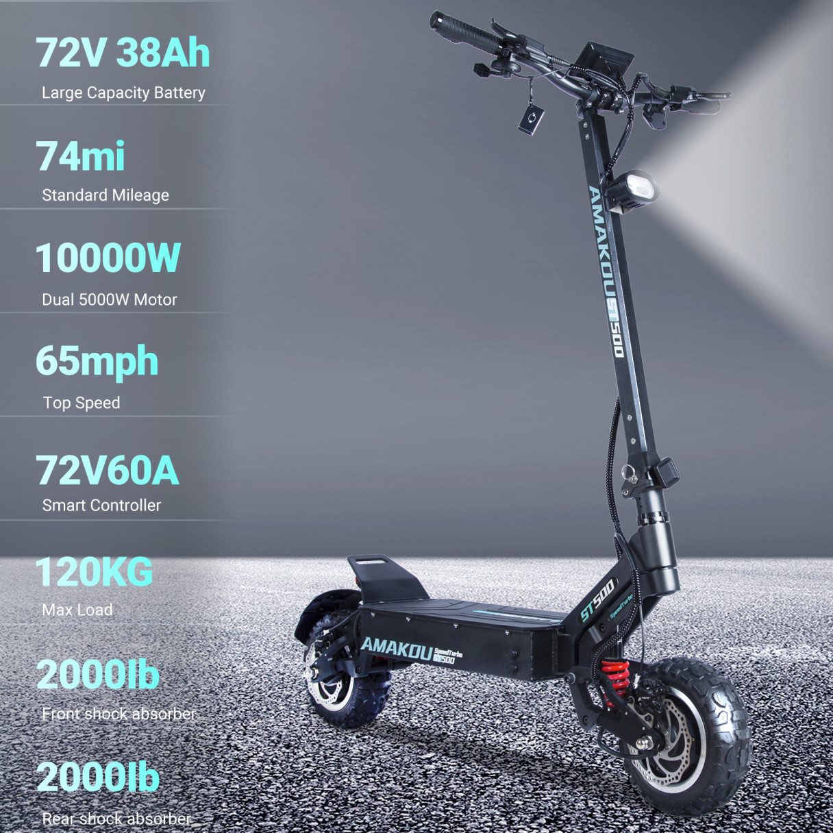[EU Direct] AMAKOU ST500 Electric Scooter NFC Function 72V 40AH Battery 72V 4500W*2 Dual Motors Recommended Top Speed 25KM/H 11inch Off-road Tires 120KM Max Mileage 120KG Max Load Folding E-Scooter TOURSOR X7