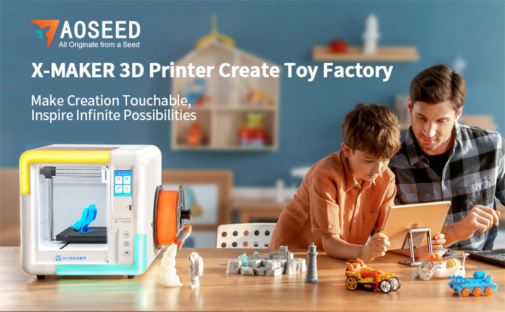 AOSEED X-MAKER Children's 3D Printer High Precision 0.1/0.05mm Ultra Silent <50dB Wireless Smart One-Press Printing WiFi USB Safe Enclosed Design