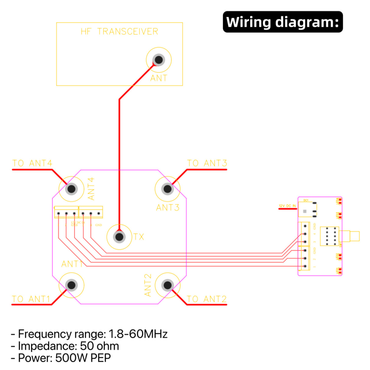 AT-14 4-Way Coax Remote Antenna Switch Convenient Switching 1.8MHz-60MHz 500W PEP