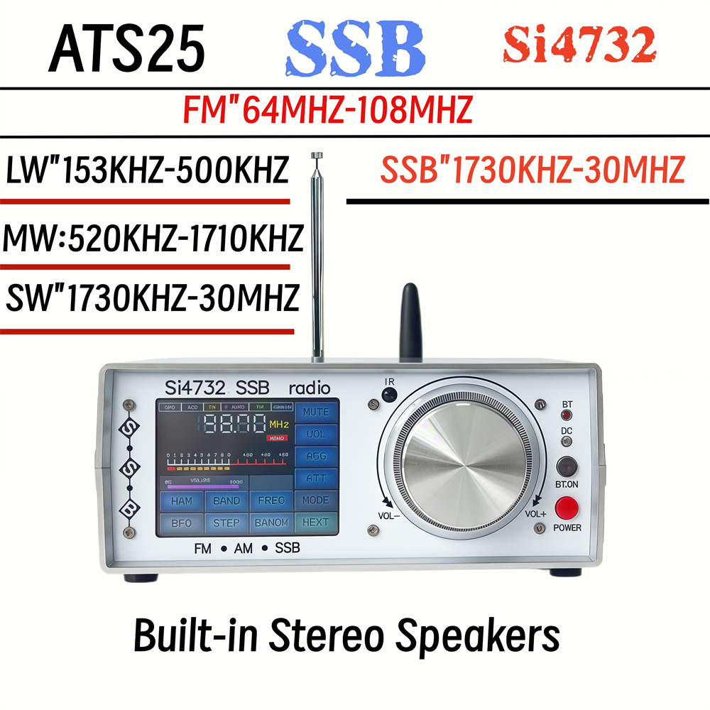 ATS-25 Full Band Radio Receiver Touch Screen Bluetooth RCA Stereo Output Rechargeable Lithium Battery Adjustable Bandwidth SSB FM SW MW LW