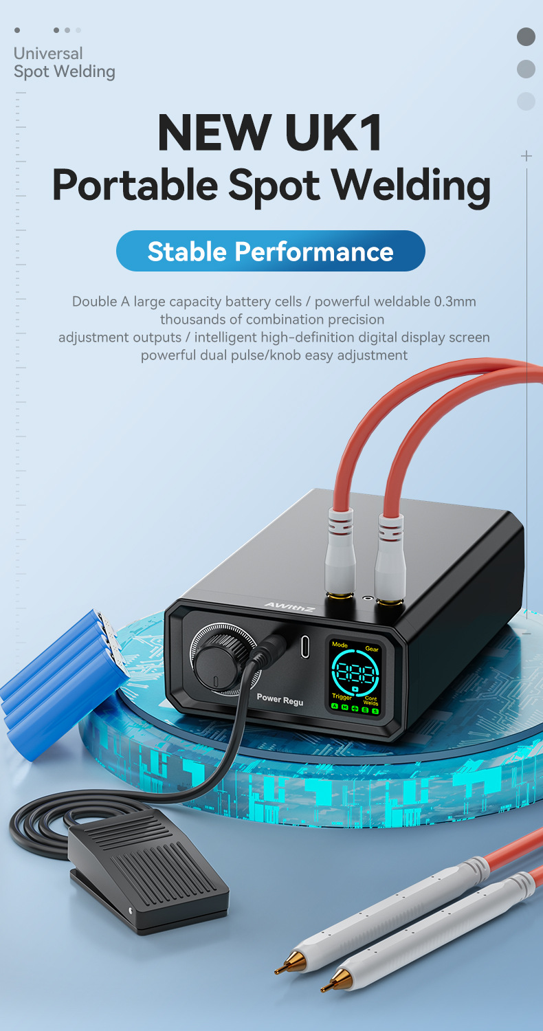 AWithZ UK1 Portable Spot Welder Lithium Battery 0.3mm Nickel Welding Digital Display Compact Design Type-C Charging Automatic Manual Mode