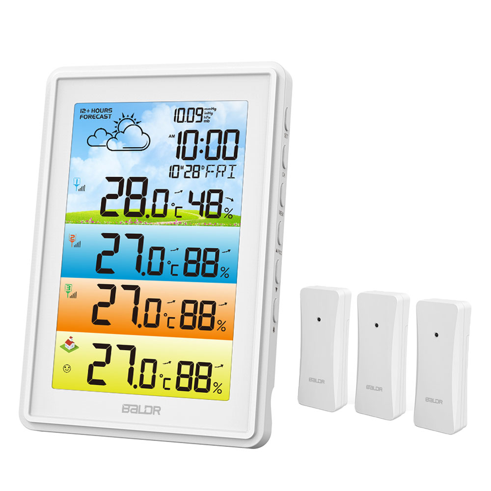 BALDR 3 Sensors Weather Station Wireless Indoor Outdoor Thermometer with Alarm Clock / Calendar / Weather Forecast