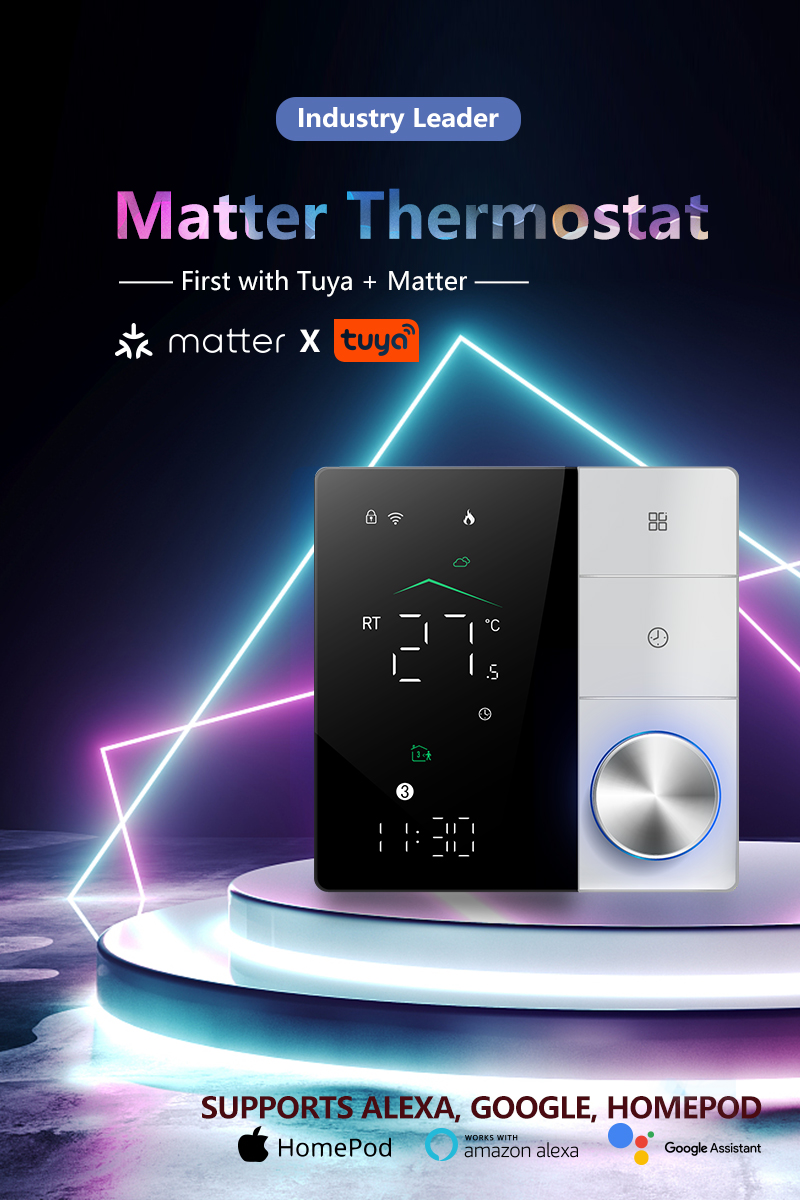 BECA Wireless Matter Smart Thermostat Temperature Controller Wall-mounted 5A/16A Water Gas Boiler Heating Voice Control with Alexa Google Assistant
