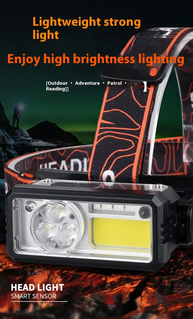 Super headlamp! Very powerful, sensor mode and high light, 3 LED 2 COB. Charges quickly and lasts a long time, works perfectly. I recommend!