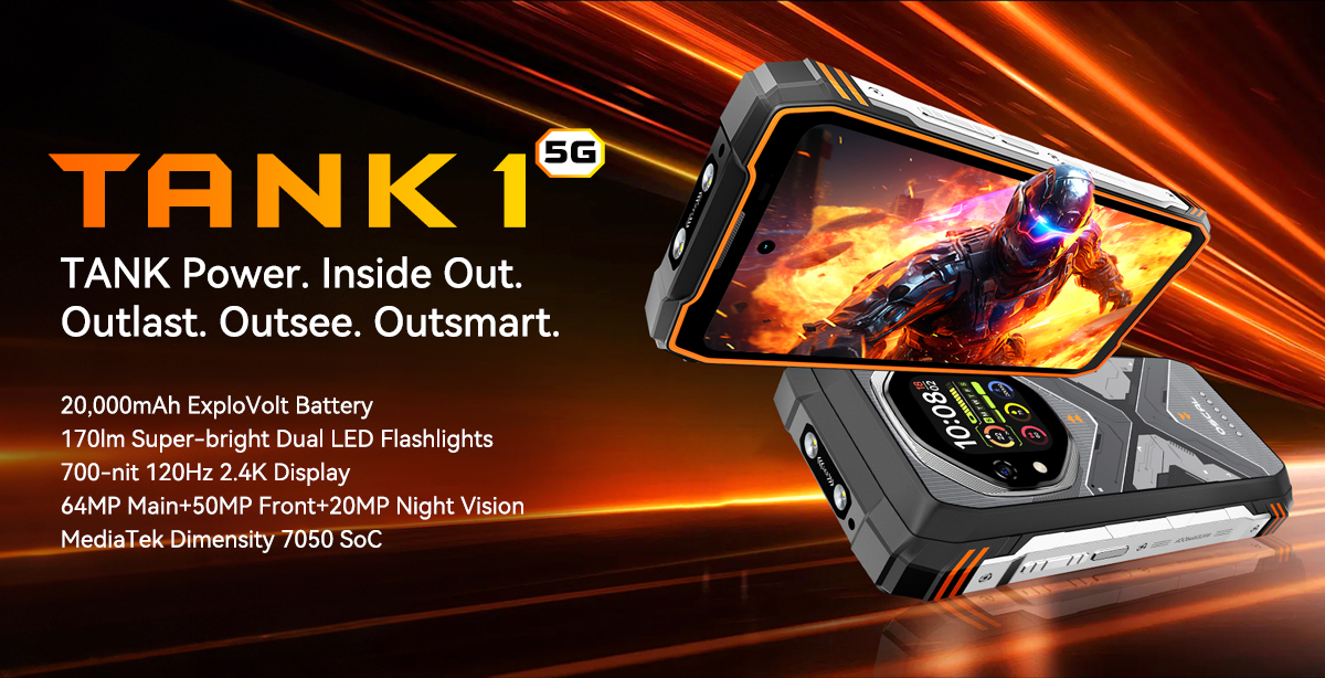 Blackview OSCAL TANK 1 5G AI Dual Display 36GB 256GB/48GB 512GB 20000mAh 55W Fast Charge Dual LED Flashlights 6.78 inch 120Hz 2.4K 64MP Camera Android 15 NFC Dimensity 7050 IP68 IP69K Waterproof Rugged Smartphone
