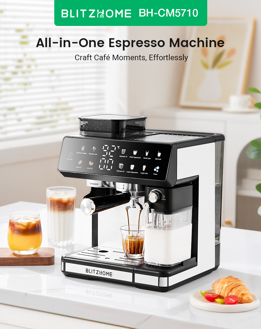 BlitzHome® CM5710 All-in-One Espresso Coffee Machine with Built-in Grinder Dual Boiler, Automatic Milk Frother Hot & Cold Brew Touch Screen