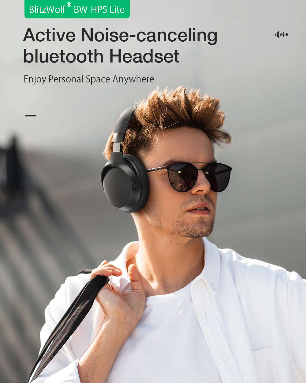 BlitzWolf® BW-HP5 Lite bluetooth Headset ANC Headphone Dual Active Noise Canceling Dual Drivers 1000mAh AAC Stereo Wireless Headphone with Mic