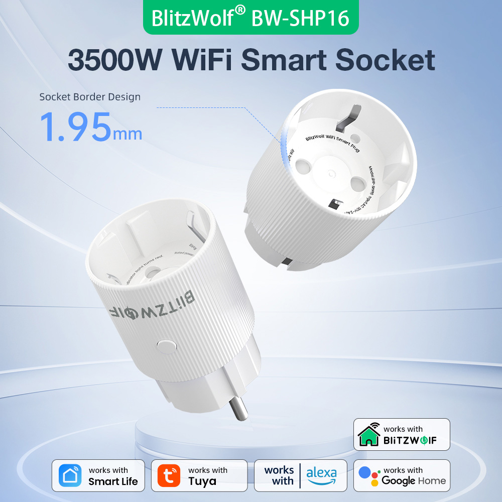 BlitzWolf® BW-SHP16 16A 3500W WiFi Smart Plug Socket with RGB Lighting Energy Monitoring Power Failure Memory App & Voice Control Family Sharing Timer Function Works With Amazon Alexa Google Home