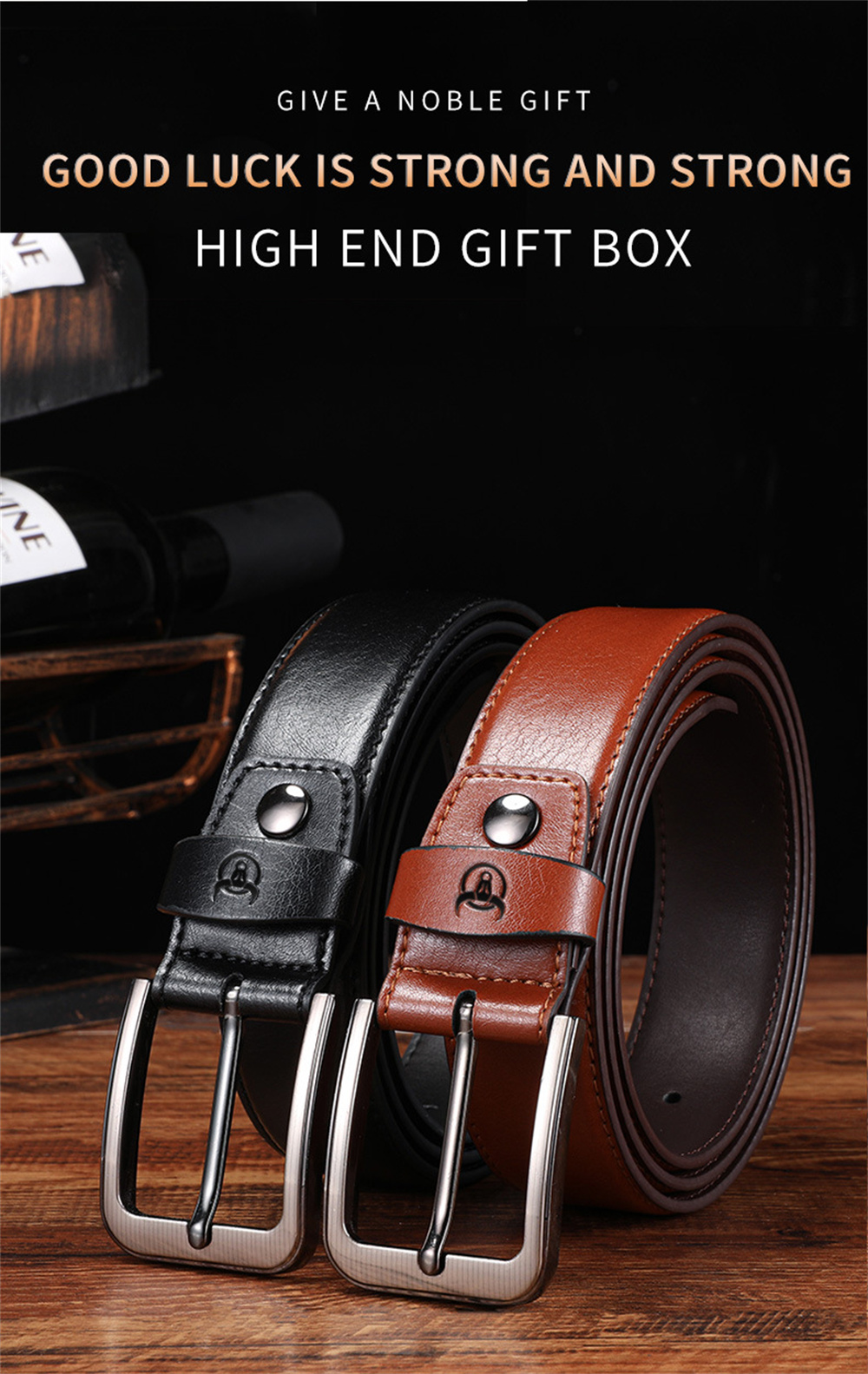 BULLCAPTAIN 130cm Genuine Leather Mens Pinch-buckle Belt with Box Birthday Gift for Husband Father Son