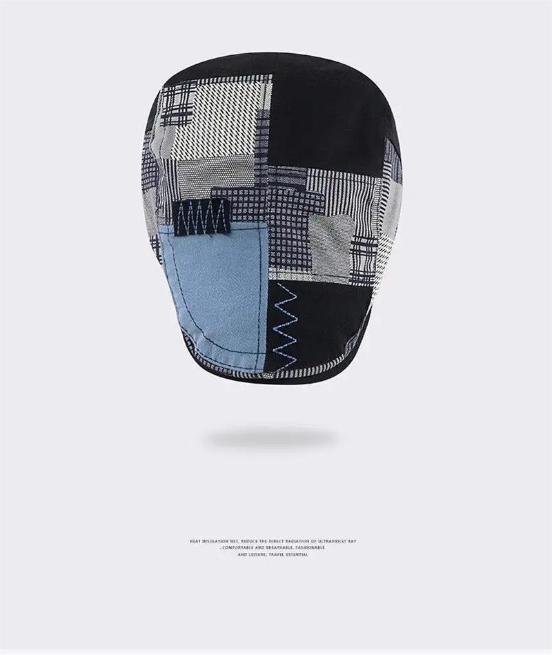 Collrown Men Berets Retro Patchwork Plaid hat Men's Flat Cap England Newsboy Cap Classic Peaked Painter Caps for Spring Summer Autumn Winter