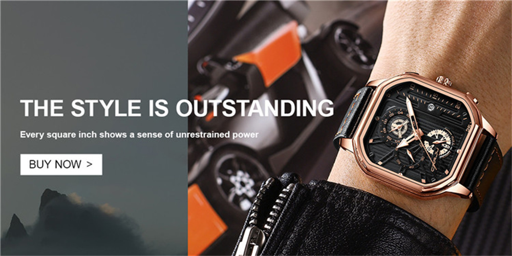 CRRJU Men's Luminous Waterproof Sports Watch Square Dial Chronograph Business Casual Quartz Wristwatches