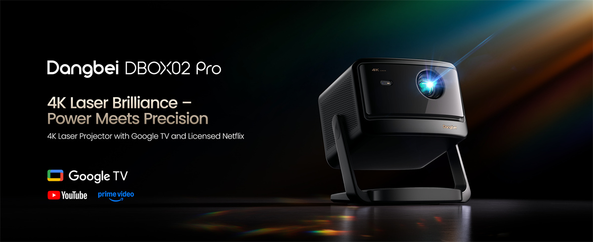 [EU Direct] Dangbei DBOX02 Pro 3D 4K Laser Projector 2000 ISO Lumens Android TV with Auto Focus Keystone Dual 12W Speakers Built-in Stand for Home Cinema Entertainment