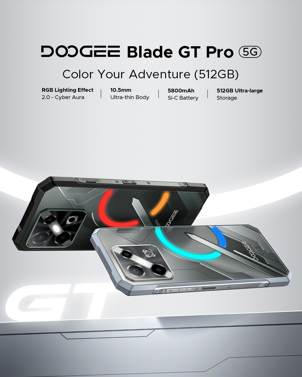 DOOGEE Blade GT Pro 5G LED light effect 32GB 512GB 100MP Triple Camera Dimensity 7025 6.72 inch 120Hz 5800mAh Android 14 NFC IP68 IP69K Waterproof Rugged Smartphone