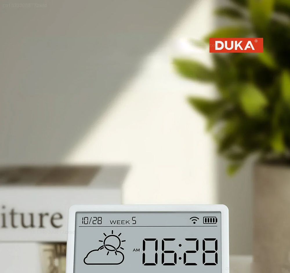 DUKA LCD Wireless Smart Home WIFI Temperature and Humidity Weather Sensor Rechargeable Indoor Clock Hygrometer Mini Digital Thermometer