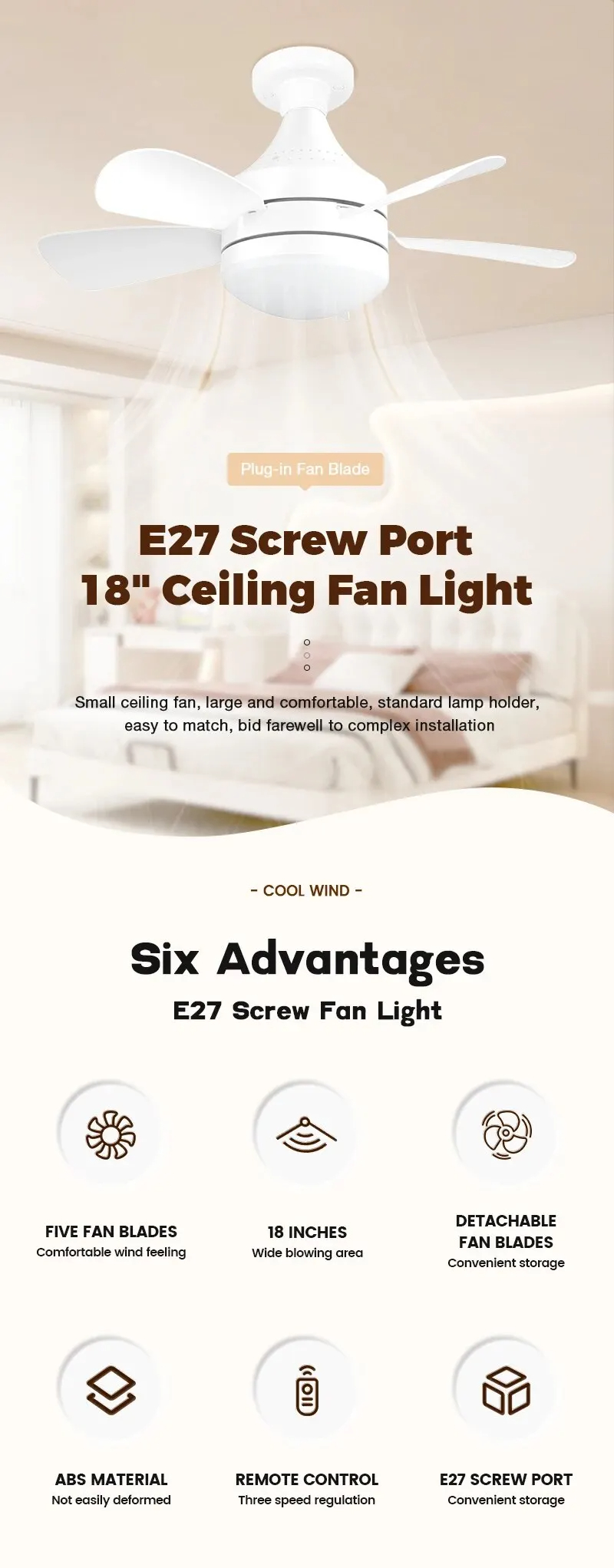 Elfeland 18 Inch E27 Screw Head Fan Light Remote Control Three Color Dimming Detachable Fan Leaf Household Silent Small Fan Light