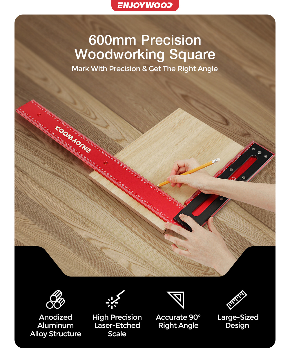 ENJOYWOOD 600mm Aluminum Alloy Carpenter Square Framing Square Right Angle Ruler for Woodworking Square Setting Marking
