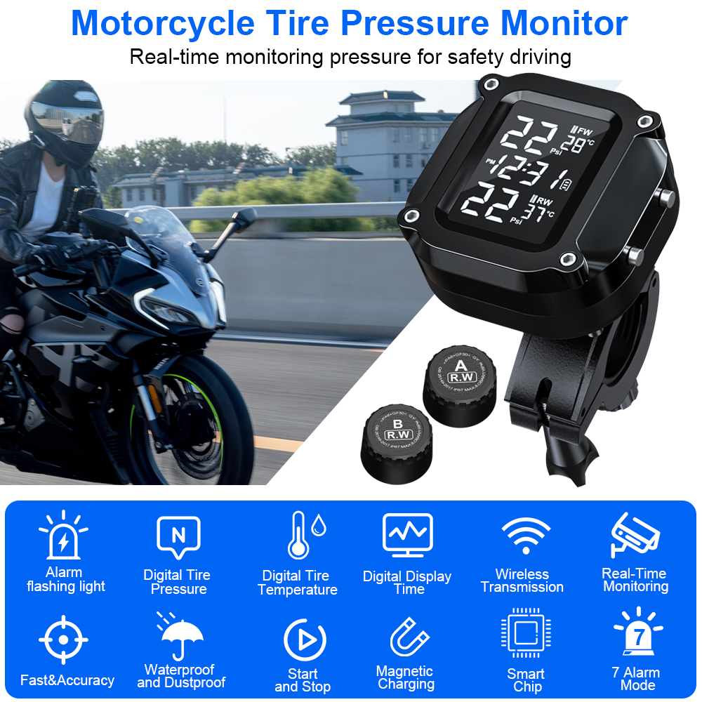 Extractme Wireless TPMS Motorcycle Tyre Temperature Alarm Sensor USB Charging LCD Display Tire Pressure Monitoring System