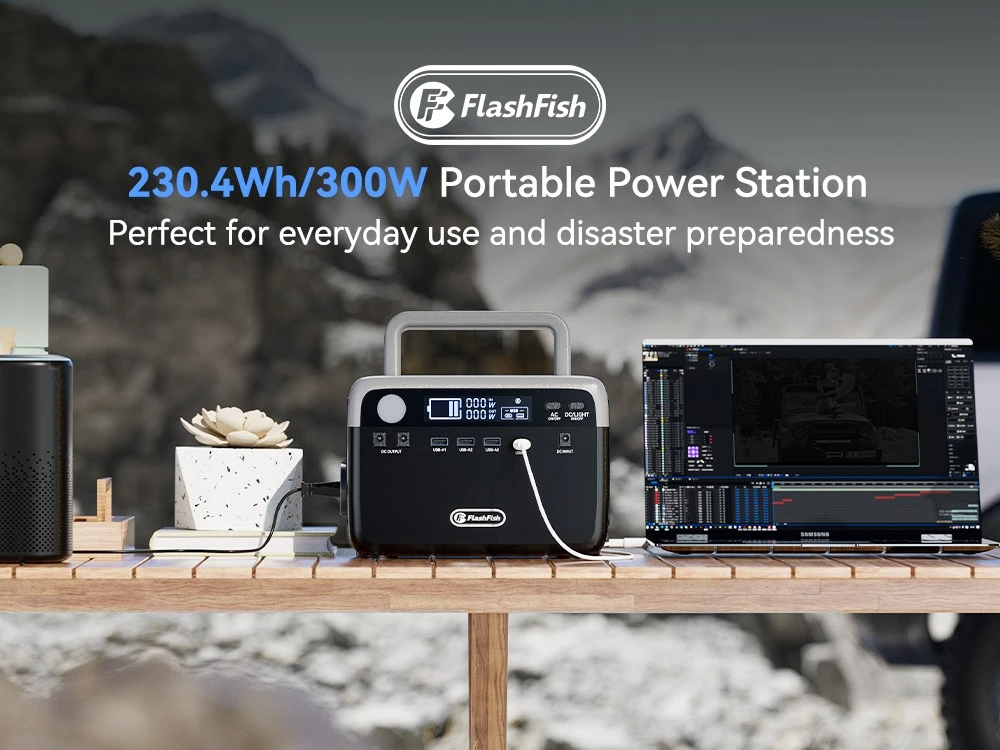 [EU Direct] Flashfish BP030B 300W Portable Power Station, 230.4Wh LiFePO4 Battery, 600W Surge, AC Outlets, Pass-through Charging, Solar Generator for Camping/Home Backup/Emergencies/Off-Grid/Power Outages