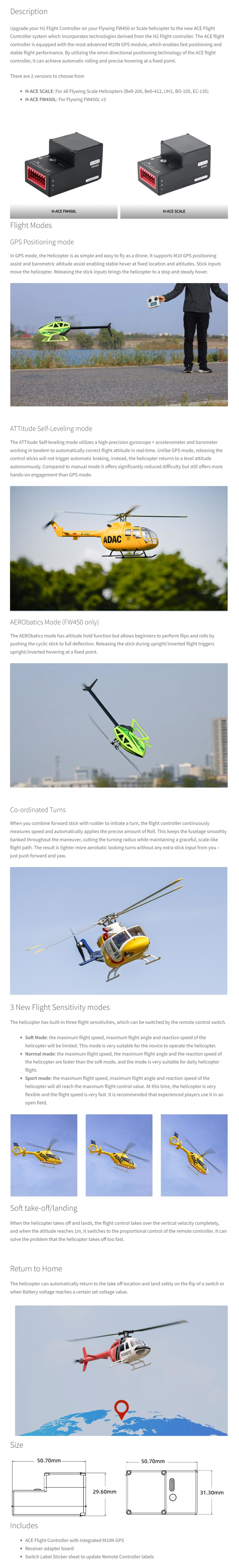 FLY WING ACE Flight Controller GPS locking FBL Gyro H-ACE SCALE for FLY WING Bell-206 Bell-412 UH-1 BO-105 EC135 RC HelicoptersScale / H-ACE FW450L for FLY WING FW450L V3 RC Helicopters