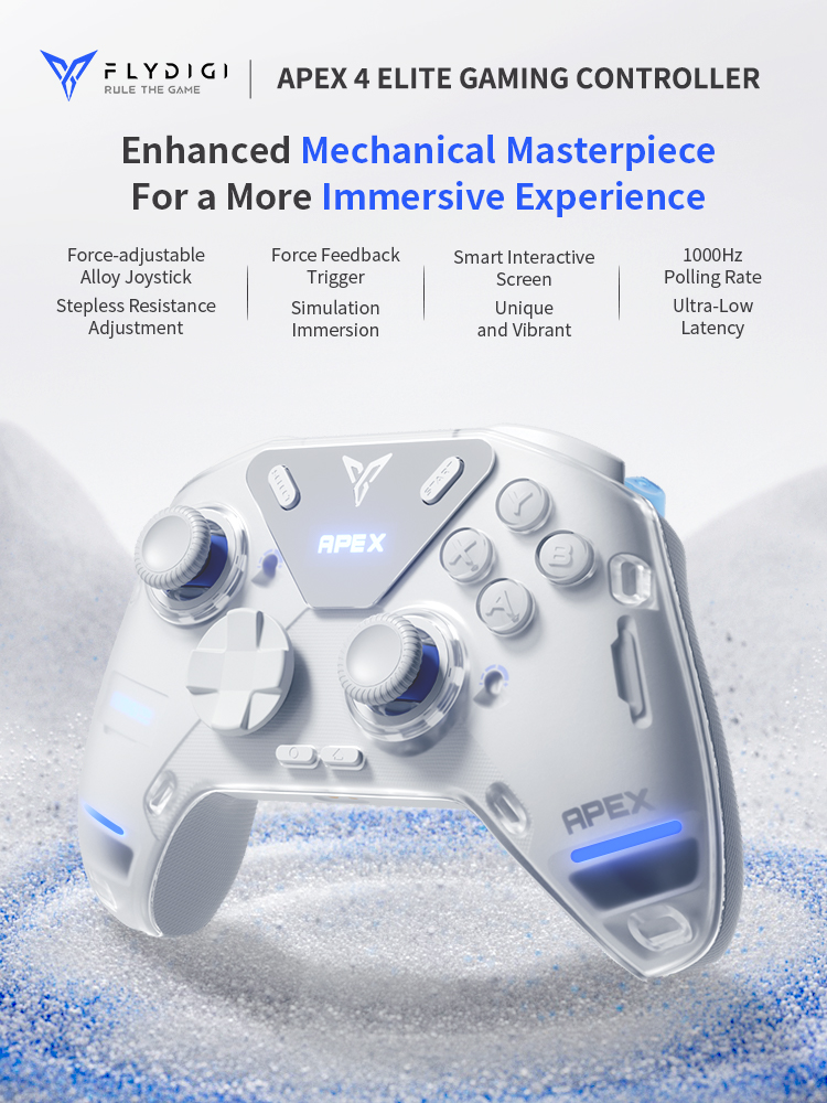 FlyDiGi APEX 4 Gaming Controller Wireless Elite Force Feedback Trigger Support PC/Switch/Mobile/TV Box Gamepad 2024 New White Standard Edition