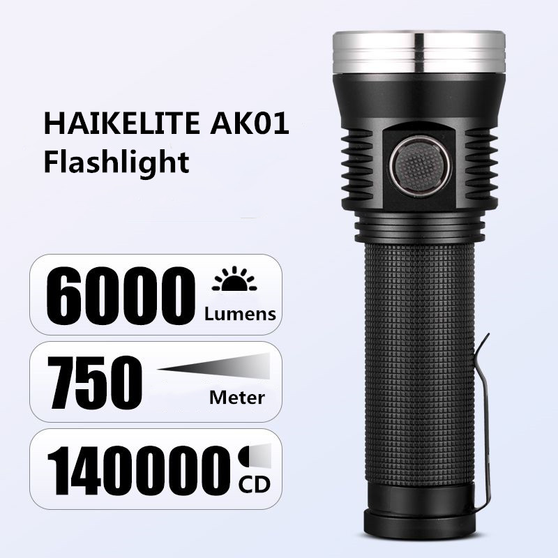 Haikelite AK01 6000LM Powerful Flashlight 750m Long Range Type-C USB Charging LED Torch 21700 High Power Camping Lantern