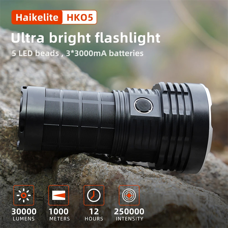 HAIKELITE HK05 5*SFN60 30000LM 1000M Long Range Powerful LED Flashlight with 3*21700 Battery Type-C USB Rechargeable High Power Output Strong LED Torch