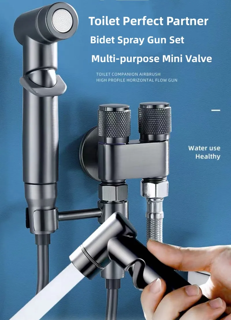 High Pressure Dual Control Valve Hygienic Shower Toilet Bidet Spray Gun Set Dual Outlet Mini Angle Valve Handheld Bidet Sprayer Toilet Cleaning for Bathroom Accessories