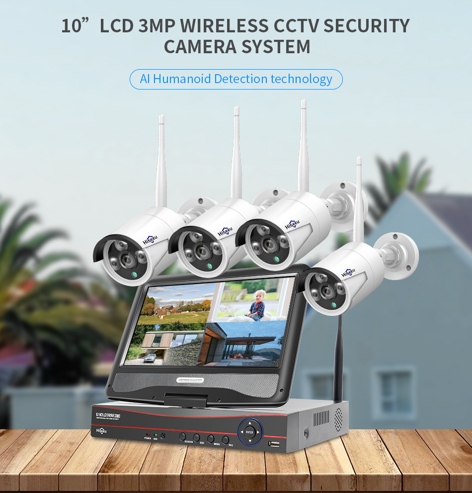 Hiseeu 4HB615 5MP 8CH NVR Security Cameras System Kit Waterproof Wireless Outdoor CCTV Camera Surveillance System Set with 10.1 inch Monitor