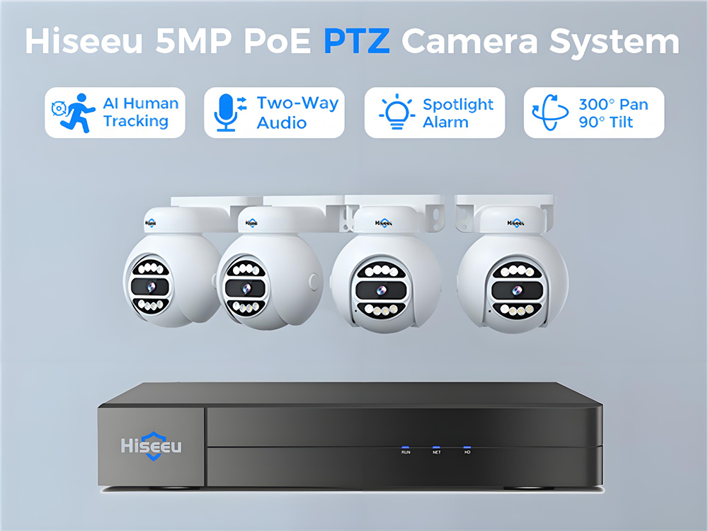 Hiseeu PK-4YHD685 5MP WiFi IP Camera with AI Human Tracking Two-Way Audio Spotlight Alarm 300° Pan 90° Tilt Weatherproof IP65 PoE Suitable for Indoor and Outdoor Surveillance EU Plug