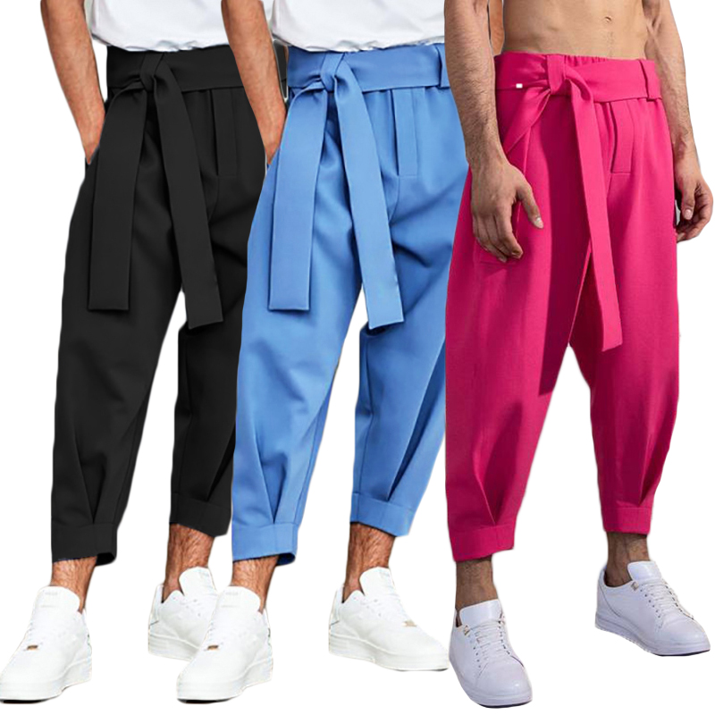 INCERUN Men Pants Fashion Solid Color Bow Knot Trousers Men Streetwear Elastic Waist Harem Pants