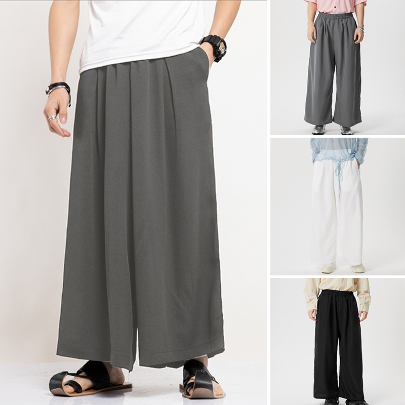 INCERUN Mens Solid Color Comfortable Loose Fit Elastic Pants