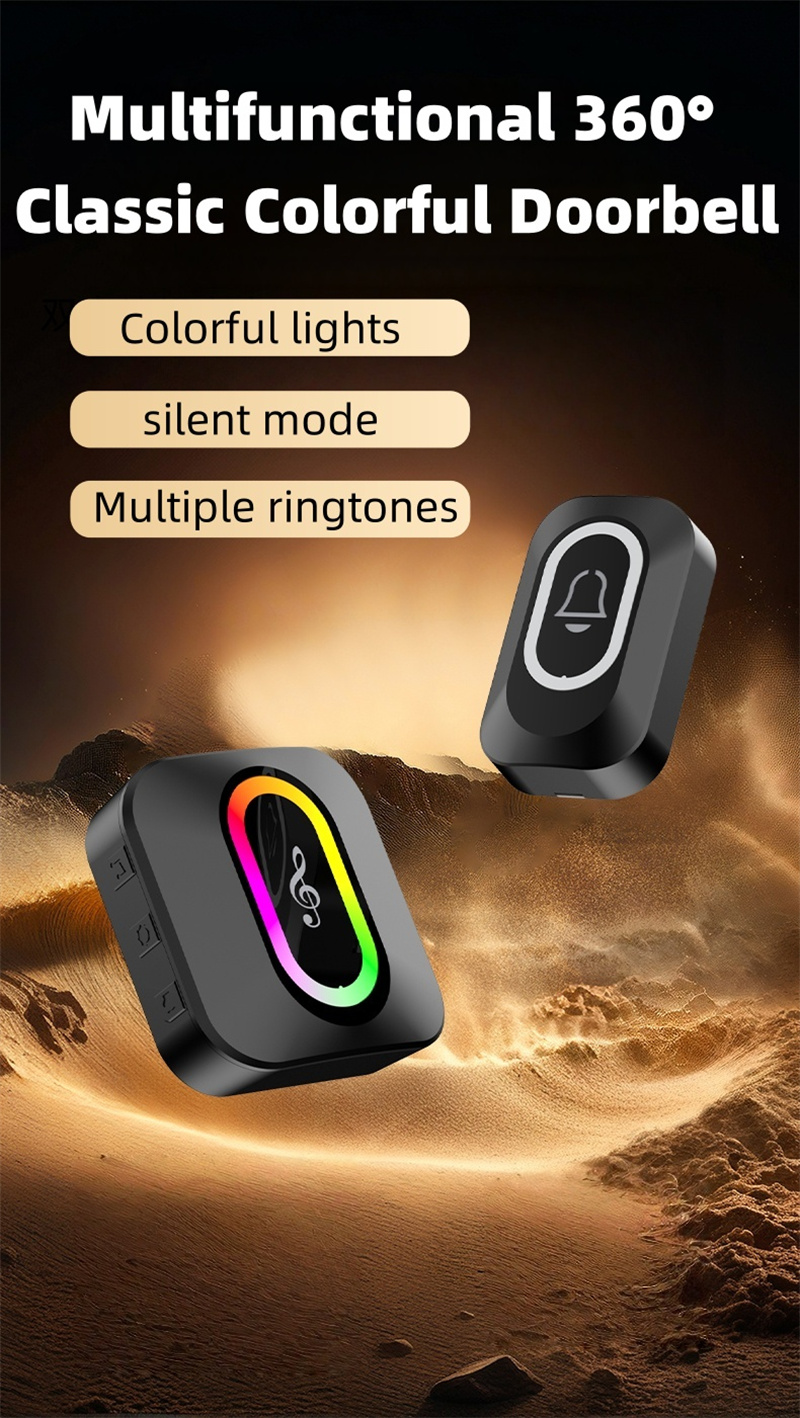 Intelligent Wireless Music Doorbell 50-100 Meters Range 38 Rings LED Lighting Silent Mode Adjustable Volume Call Alarm Waterproof Smart Home Door Bell