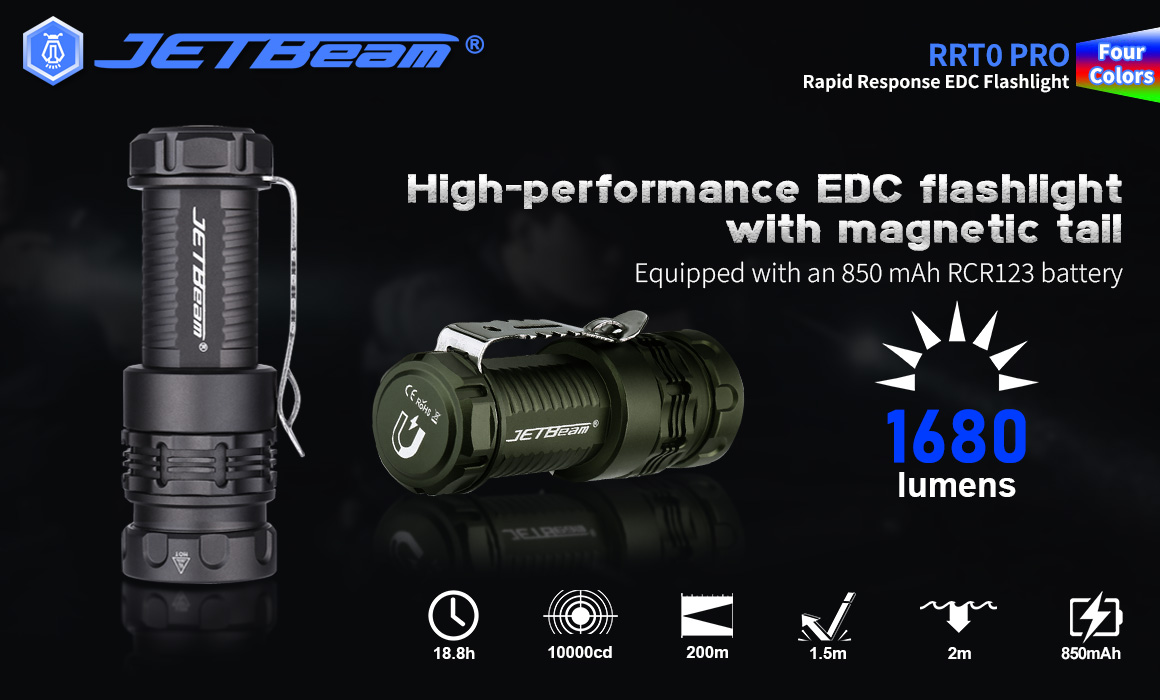 JETBEAM RRT0 PRO LED Rechargeable Small EDC Flashlight Equipped with 3 high-Brightness LEDs+with RGB Light,1680 lumens Maximum Range 200 Meters,IP66 Waterproof,for Outdoors,Work,Emergency