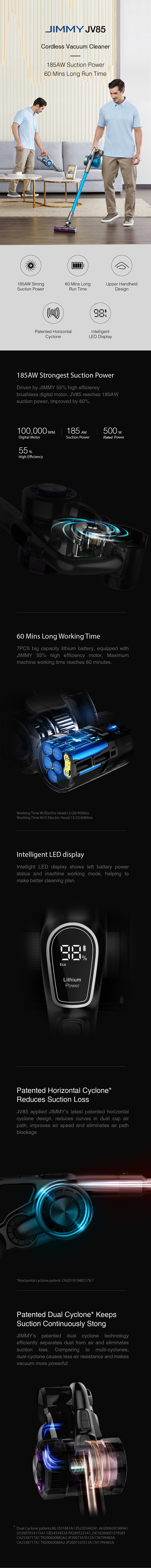 [EU Direct] Jimmy JV85 23Kpa 2 In 1 Cordless Vacuum Cleaner with Intelligent LED Display Screen Handheld Vacuum Cleaner with 0.6L Dust Cup Capacity