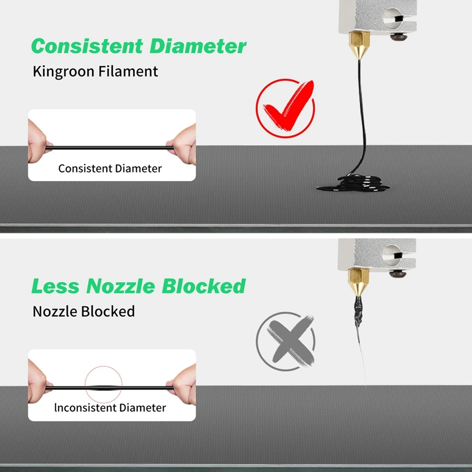 KINGROON PLA 3D Printer Filament 1.75mm 10kg Black High Strength Easy to Print Eco-Friendly No Bubbles Smooth Printing High Precision