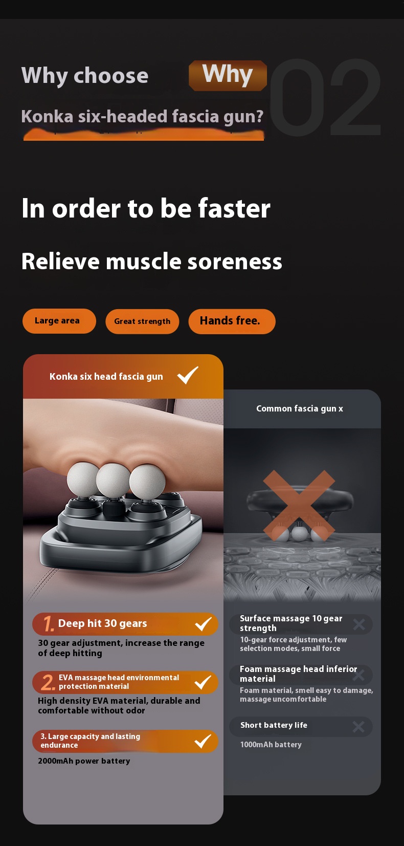 KONKA 4-Head / 6-Head Fascia Gun Muscle Relaxation Massager 3 Modes 30 Adjustable Speeds Multi-Function High-Frequency Vibration Massager