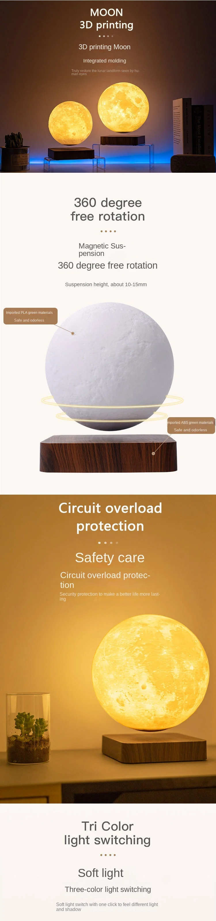 Magnetic Levitation Globe LED Moon Floating Romantic Lamp Suspended 3D Moon Lamp Rotating Globe Bedside Lamp