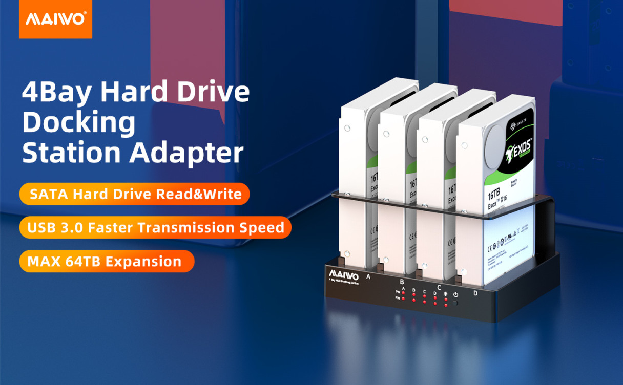 MAIWO USB 3.0 External Hard Drive for PC 4 Bay 2.5 inch 3.5 inch Enclosure Multi-Bay HDD SDD Docking Station Hard Drive Case