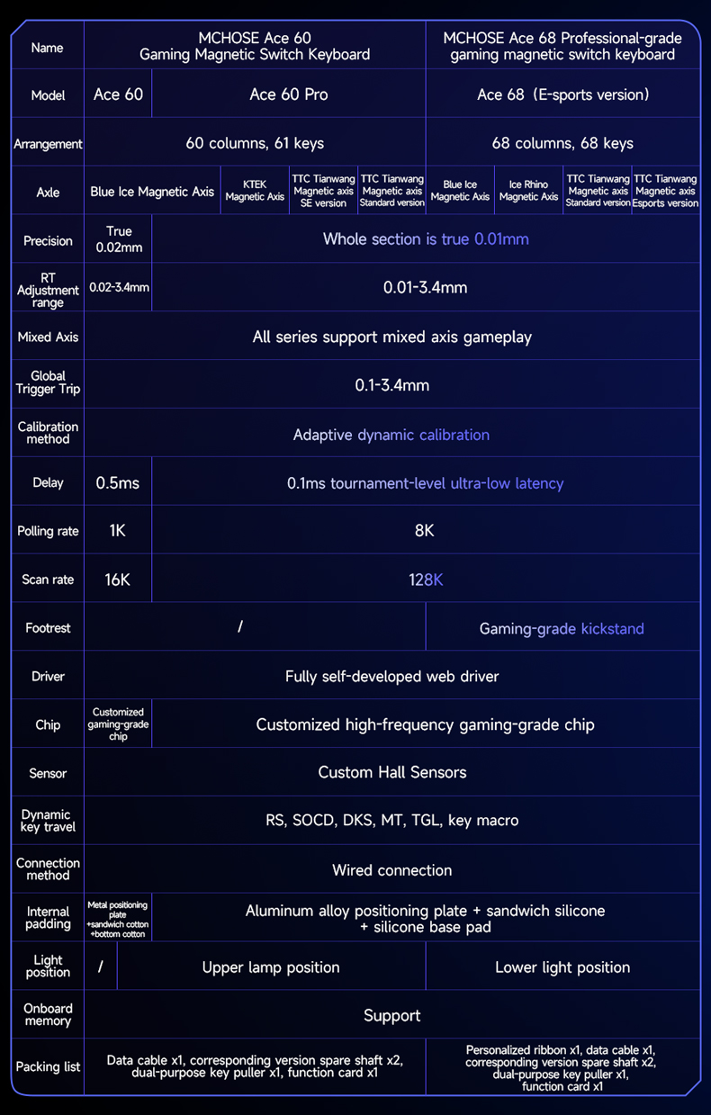 MCHOSE Ace 68 Magnetic Switch Mechanical Keyboard 60% Layout 68 Keys RGB Hot Swap 8K Polling Rate E-sports Version USB Wired Gaming Keyboards