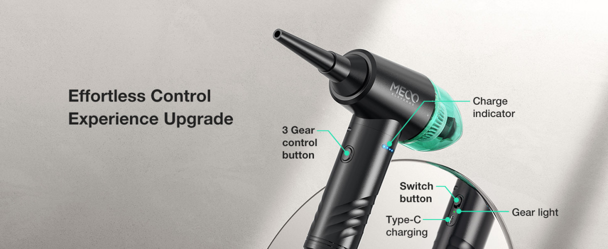 MECO ELEVERDE ME-CR1 Electric Compressed Air Duster & Vacuum Cleaner 4 in 1 Function Powerful 3-Gear to 90000RPM/12000PA Keyboard Cleaner, Rechargeable Cordless Air Duster for Computer/Car/Pet Hair