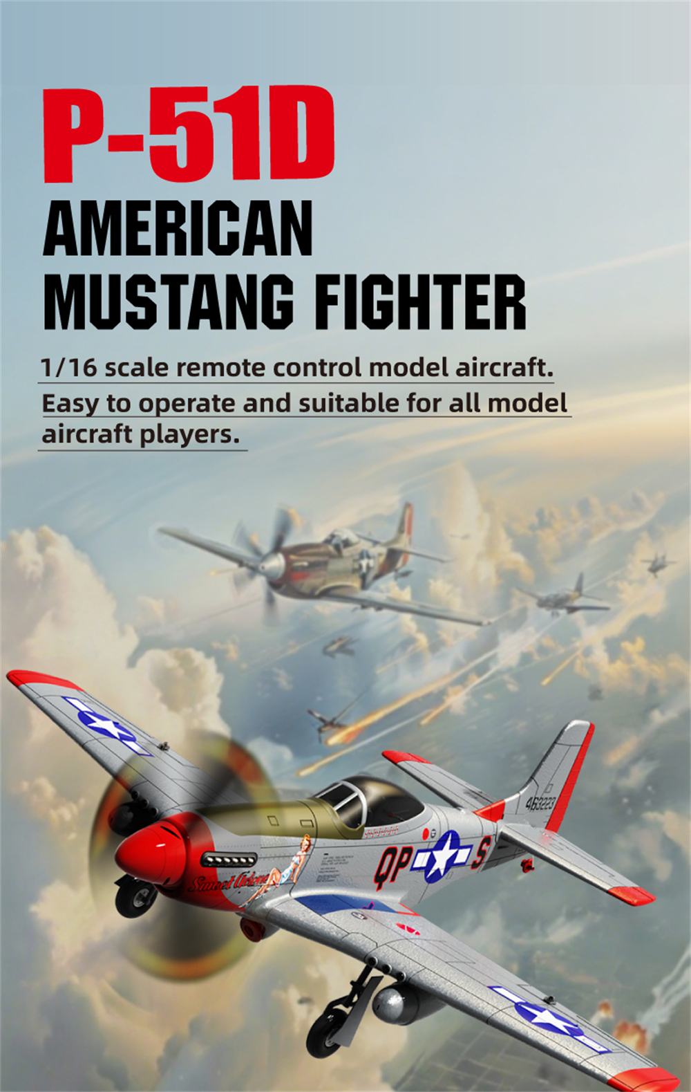 MO-FLY P-51D Mustang 1/16 Scale 685mm Wingspan 2.4GHz 10CH Built-in Gyro 3D/6G Switchable One Key Aerobatics Brushless EPP FPV RC Airplane Glider BNF/RTF Compatible DSM SBUS
