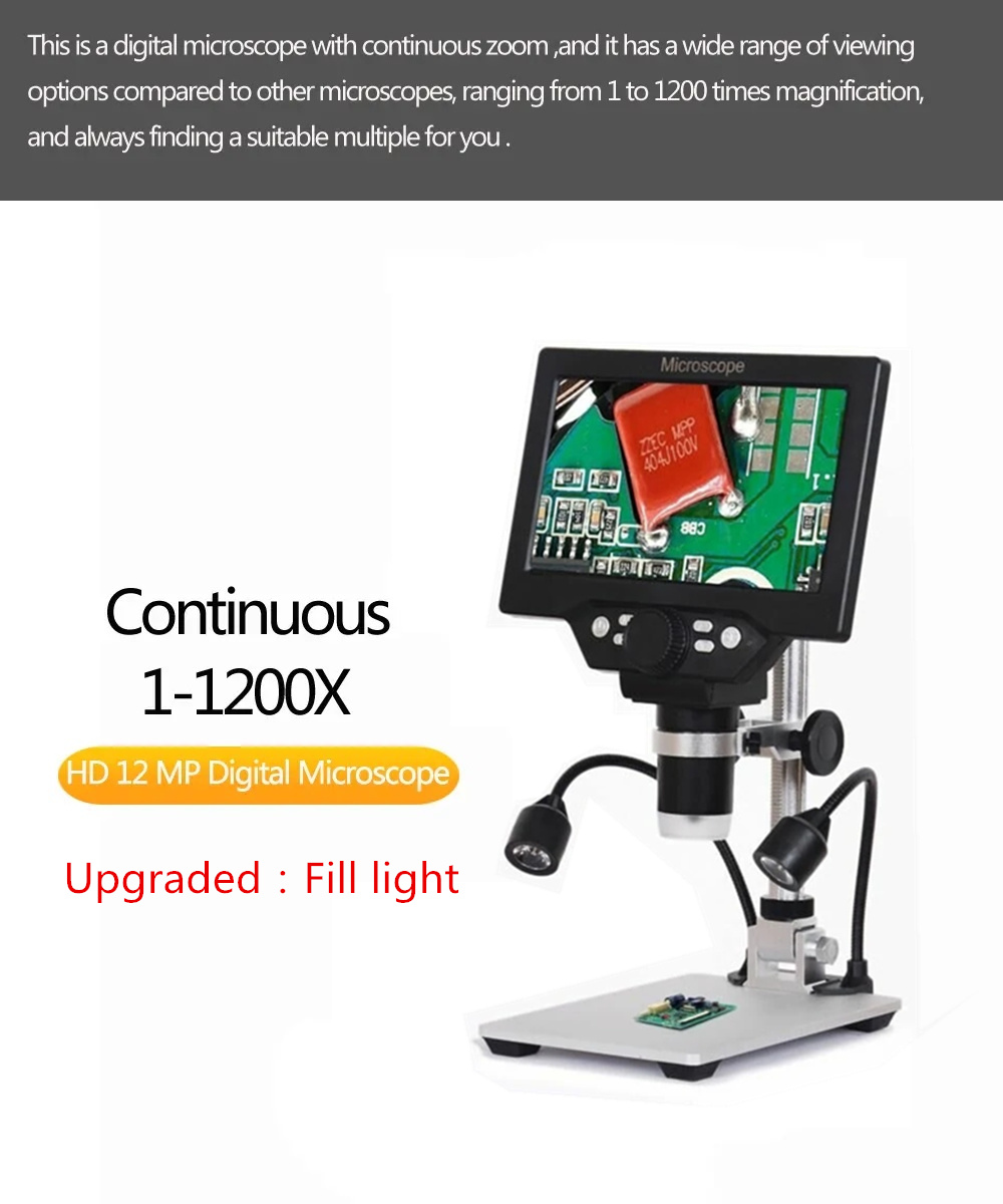 MUSTOOL G1200D Digital Microscope 12MP 7 Inch Large Color Screen Large Base LCD Display 1-1200X Continuous with Light