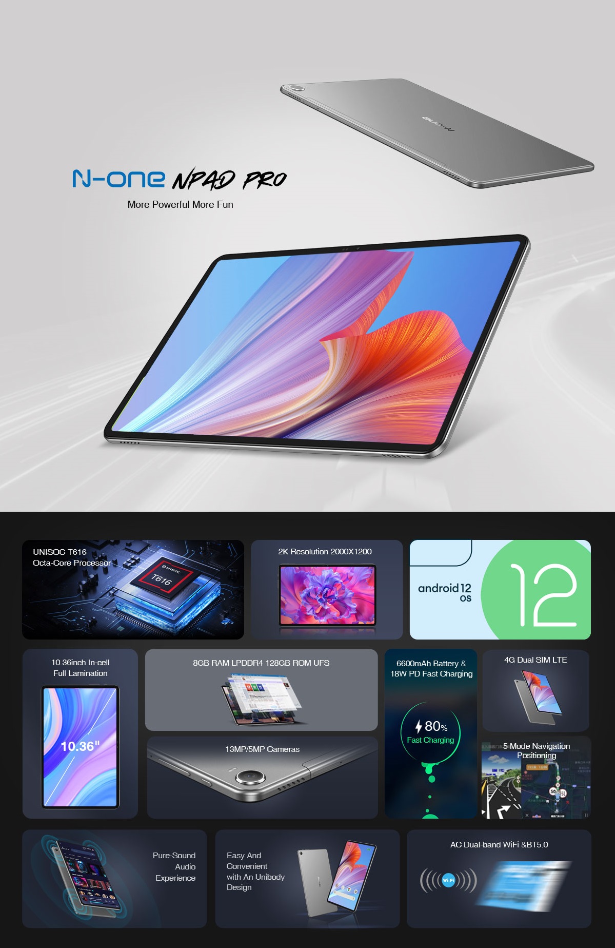 N-One NPad Pro UNISOC T616 Octa Core 8GB RAM 128GB ROM 4G LTE 10.4 Inch 2K Screen Android 12 Tablet