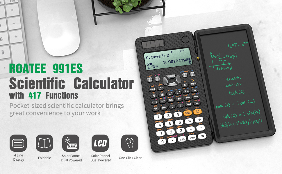 NEWYES 991ES 6.5 Inches Scientific Calculator with LCD Writing Tablet and 417 Functions Solar Energy Science Calculators Notepad Professional Foldable Calculators for School Students Office Assistant