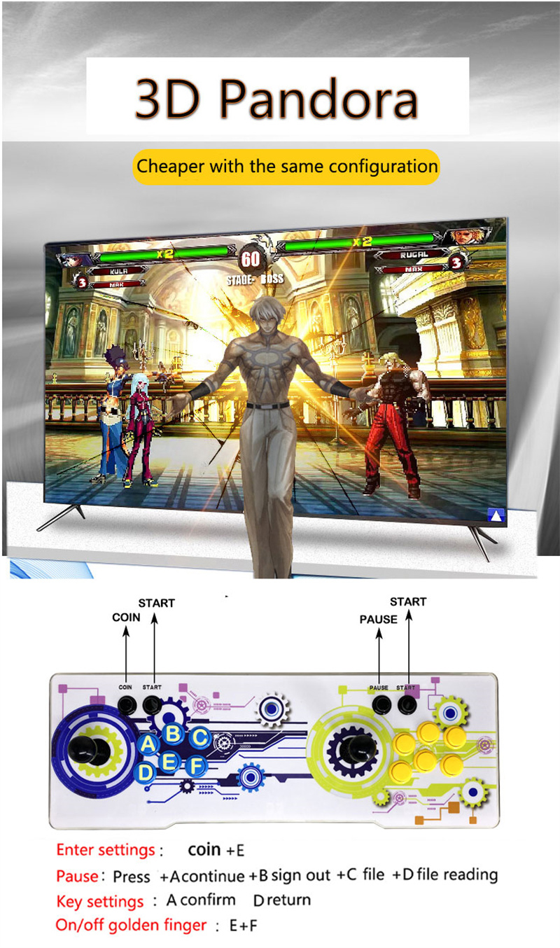 Pandorra Box 3D Retro Game Console Arcade Video Game Machine Built-in 7000 Games 8-button Dual Player Gamer Console with Joystick for Kids Fun EU Plug